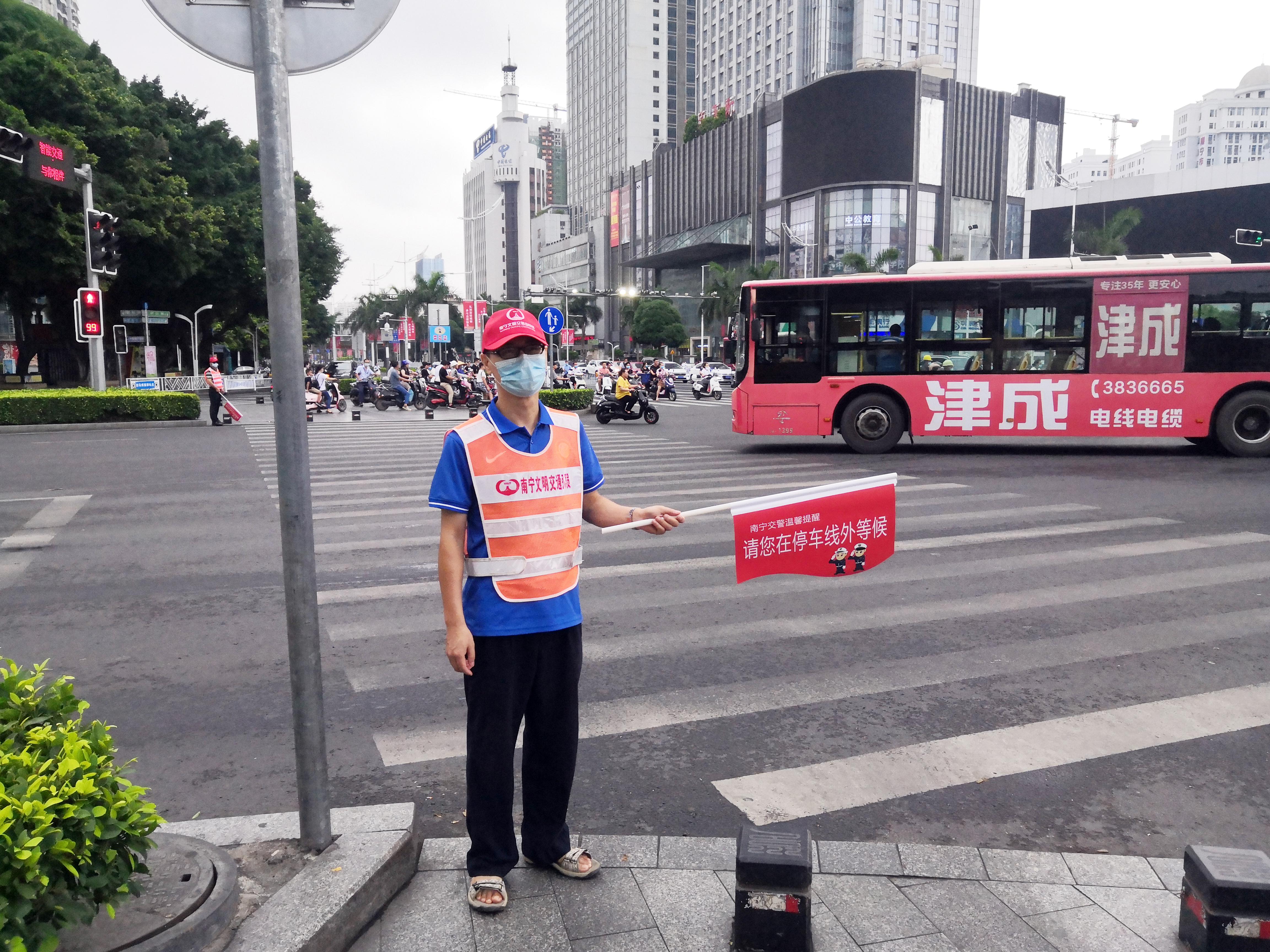近期,公司中心調度室、陳村水廠、西郊水廠、江南污水處理廠的志愿者們出現在南寧市交通繁華的交通路口,早上七點半,志愿者們就紛紛提前到崗,接受交警的崗前培訓。活動中,炎炎烈日下,他們一絲不茍認真履行工作職責,對闖紅燈、逆行、走快車道等交通違法行為的非機動車駕駛人進行勸阻、提醒市民文明交通禮讓,同時耐心解答市民詢問、協助老幼病殘孕等特殊行人安全過馬路,攜手路口交警一起文明有序的出行環境。當天太陽雖然很大,當志愿者們絲毫沒有退縮,炎炎烈日下映紅的臉頰是城市街頭最美的那一抹“紅”。